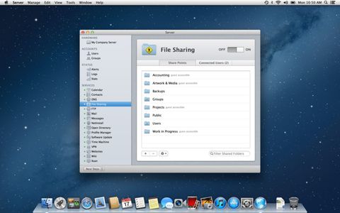 Apple OS X 10.8 Mountain Lion Server kurulum uygulamasını da Mac App Store üzerinden yayınladı. OS X ve iOS aygıtları için tasarlanan bu paket sayesinde dosya paylaşma, toplantı planlama, kişileri