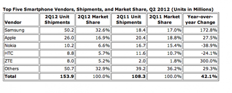 IDC tarafından yapılan araştırmaya göre; küresel akıllı telefon pazarı 2012'nin ikinci çeyreğinde bir önceki yıla göre %42.1 oranında büyürken, tüm cep telefonu pazarındaki yıllık büyüme oranı ise %1'de kaldı. Akıllı