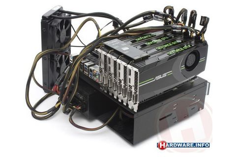 Hollanda'da yayın yapan Hardware.info sitesi dört adet NVIDIA GeForce GTX 680 grafik kartını ele geçirmiş ve bu kartları dörtlü SLI konfigürasyonunda bağlayarak bir performans testi gerçekleştirmiş. Yaklaşık 2 bin dolarlık