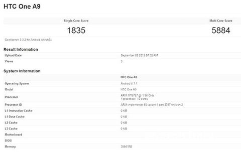HTC One A9'a ait olduğu iddia edilen benchmark testi sonucunu gösteren bir ekran görüntüsü, Çinli web sitesi Juggly tarafından yayınlandı. Paylaşılan ekran görüntüsü, akıllı telefonun çokça konuşulan on çekirdekli Helio