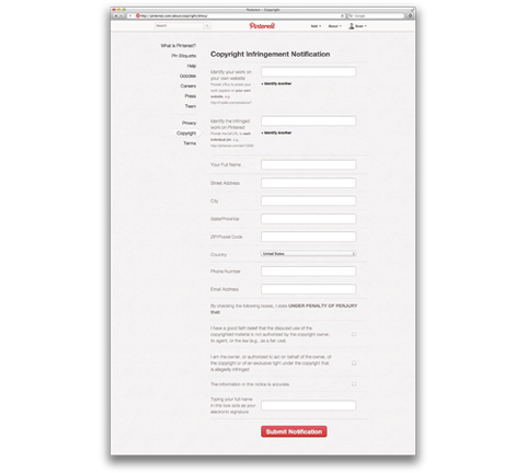 Sosyal fotoblog ağı Pinterest bir süredir telif hakları yüzünden yaşadığı sorunlarla uğraşıyor. Kullanıcıların fotoğrafları asıl sahiplerine hiç atıfta bulunmadan kolayca paylaşmalarının önüne geçmek isteyen Pinterest, küçük bir düzenleme yaparak fotoğraflarının
