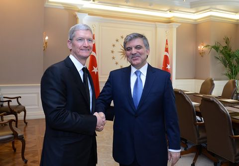Apple CEO'su Tim Cook'un dünya seyahatindeki son durağı Türkiye oldu. Cumhurbaşkanı Abdullah Gül'ü Çankaya Köşkü'nde ziyaret eden Cook, bir nevi iade-i ziyarette bulunmuş oldu. Cumhurbaşkanı Gül iki yıl önce Apple'ın