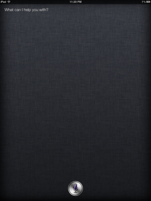 iPhone 4S'e özel bir uygulama olan Siri iPad üzerinde de bir şekilde çalıştırıldı. Ancak bu girişimin sonucunun çok da olumlu olduğunu söylemek zor. Daha önceki iPhone 4 denemesinde olduğu gibi,