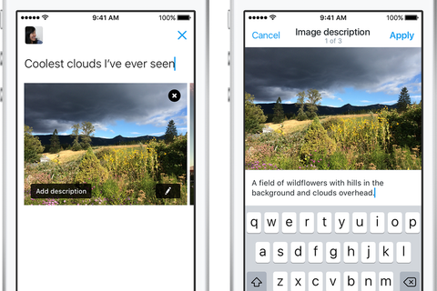 Twitter görme özürlü kişilerin siteye yüklenen fotoğraflara daha kolay erişmeleri ve onları daha kolay şekilde anlamaları için çalışıyor. Her ne kadar ekran okuyucuları ve braille teknolojisi sayesinde yazılı tweetleri yayınlamak