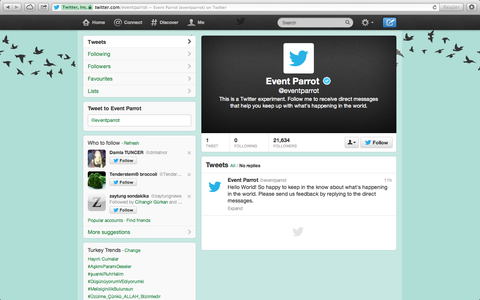 Son dakika haberlerini iletme konusunda en önemli mecralardan birine dönüşen Twitter, bu niteliğini geliştirmek için Event Parrot adı verilen yeni bir son dakika haber servisini test ediyor. Bu hafta içinde