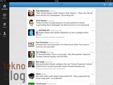 iPad için Twitter uygulaması kapsamlın bir güncellemeden geçti. 5.0 versiyon numaralı yeni sürümle birlikte önceki nesilde gördüğümüz kaydırılabilir paneller kaldırıldı, bunun yerine iPhone uygulamasının büyütülmüş hâlini andıran bir görünüm sunuldu.