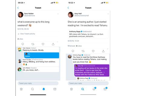 Twitter'ın ürün yönetiminde sorumlu direktörü Sara Haider, paylaştığı birkaç ekran görüntüsüyle, platformu sohbete daha açık hâle getirmek için yapmayı planladıkları bazı değişiklikleri gösterdi. Twitter, zincirlenmiş cevapları ve durum göstergelerini getirmeyi