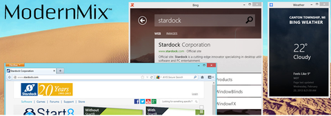 Windows 8 ile birlikte kaybolan Başlat menüsünün açığını kapatmayı amaçlayan Start8 yazılımının geliştiricisi Stardock yeni Windows 8 uygulaması ModernMix'i tanıttı. Windows 8'in modern kullanıcı arayüzü olarak tanımladığı, canlı kutucuklardan oluşan