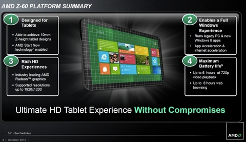 AMD genellikle masaüstü ve dizüstü bilgisayar işlemcileriyle biliniyor. Intel'in yonga üretimi alanındaki en büyük rakibi, aslında en büyük rakibi gibi tablet alanına istediği gibi giriş yapamıyor. Windows 8 ile çalışan