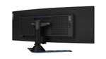 Lenovo’nun ultra geniş monitörlerin duruşu yükseltilerek, eğilerek ve döndürülerek ayarlanabiliyor. Devasa ultra geniş ekran, tabiri caizse iki adet 24 inç, 16:10 görüntü oranlı ekranın birleştirilmesinden oluşuyor ve 32:10 görüntü oranı elde ediliyor. Her iki ekran için de masada biraz yer açmalısınız. Neyse ki, ekranın her iki kısa kenarını da ince çerçeve sarıyor. Sadece alt kısımda biraz daha kalın bir çerçeve mevcut.