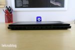 Kenarlara baktığımızda birbirine benzer tasarımın tercih edildiğini görüyoruz. Her iki kısa kenarda, arka tarafa doğru havalandırma ızgaraları yerleştirilmiş. Orta noktaya gelmeden önce kenar plakalar bitiyor ve ön tarafa doğru sadece ince bir çizgi uzanıyor. Yine de, birkaç giriş çıkış için yer var. Sol kenarda USB 3.0 portu ve 3.5 mm. kulaklık jakını görüyoruz. Sağ kenarda da bir USB 3.0 portu ve iki adet LED gösterge lambası bulunuyor. Giriş ve çıkışların önemli bir bölümü arka tarafta bulunuyor. Böylelikle kablo karmaşası dikkat çekmiyor, aynı zamanda kabloları bağlamak biraz daha kolaylaşıyor.