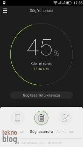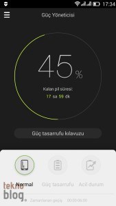 Lenovo S850’de 2000 mAh kapasiteli pil bulunuyor. Katalog değerlerine bakıldığında bu pil 13 saate kadar konuşma ve 336 saate kadar da bekleme süresi sunuyor. İki SIM kart yuvasının da kullanımda olduğu bir durumda, telefonu yoğun şekilde kullanmadığınız durumlarda Lenovo S850 bir günü rahatlıkla çıkarabilir gibi görünüyor. Ancak kamera, oyun, vs. gibi işlemciyi zorlayan çeşitli uygulamalar kullanımda olduğunda pilin hızlı şekilde tükendiğini görüyoruz. Güç Yöneticisi uygulaması barındırdığı Normal, Güç tasarrufu ve Acil durum modlarıyla Lenovo S850’nin pilinden maksimum faydayı sağlamayı amaçlıyor. Acil durum moduna geçtiğinizde bütün bağlantılar ve arkada çalışan uygulamalar kapatılıyor, sadece telefonun temel işlevleri gerçekleştirmesine izin veriliyor.