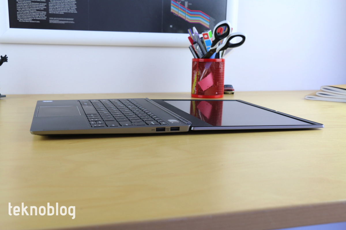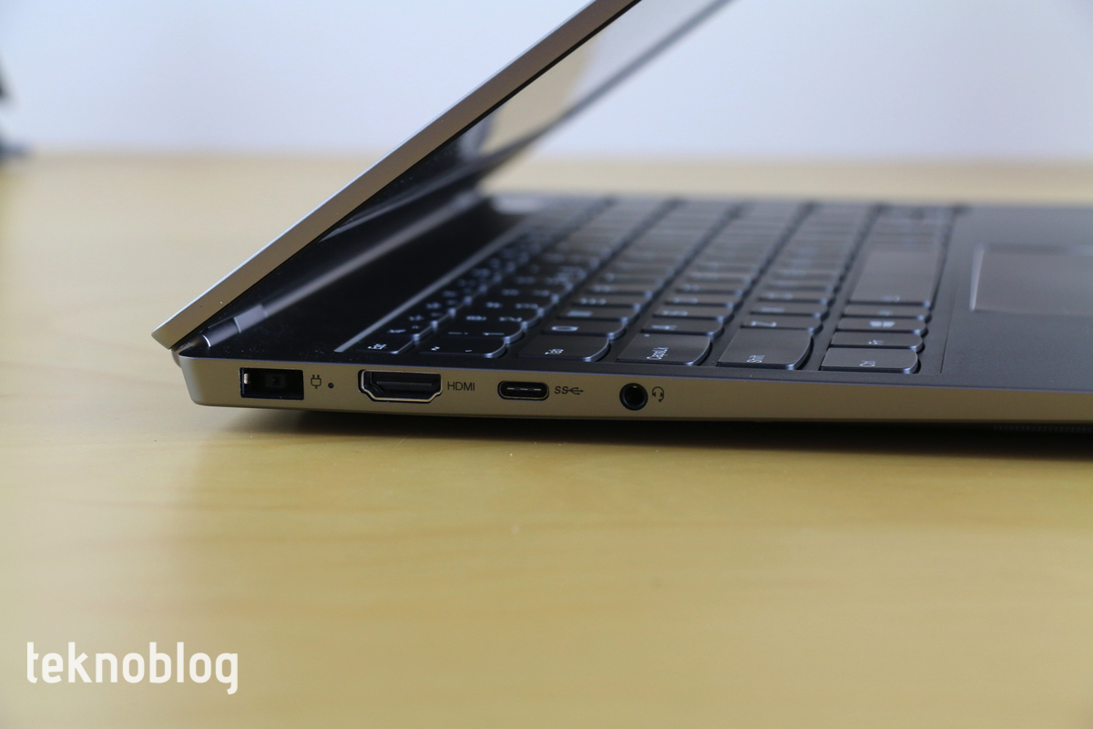 Bağlantı tarafına baktığımızda ise, Lenovo ThinkBook 13s’in daha çok standart kullanıcı kitlesine hitap ettiğini görüyoruz. Sağ kenarda iki adet USB-A portu bulunuyor. Sol kenarda ise bir adet HDMI portu mevcut. Harici monitörleri veya projektörleri bağlamak için HDMI 1.4b standardını destekleyen port bir hayli yardımcı olacaktır. USB-C portu arayanlar için de sol tarafta bir tane mevcut. Ne var ki, ThinkBook 13s Thunderbolt 3 desteğine sahip değil. Hitap ettiği kitle için Thunderbolt 3 teknolojisinin çok fazla önemli olmadığını dikkate alırsak, Lenovo’yu bu kararından dolayı fazla sorgulayamayız.