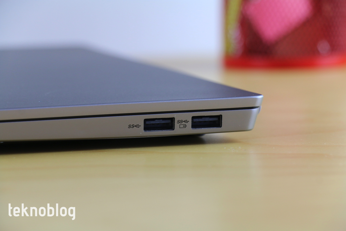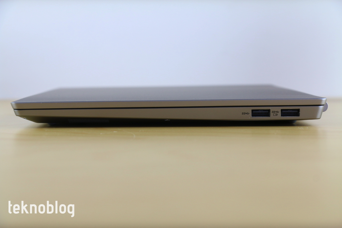 Bunun yanı sıra mevcut USB-C portu USB Güç Dağıtımı’nı desteklemiyor. Bu nedenle şarj için bu portu kullanamıyorsunuz. Ancak USB 3.1 Gen 2 standardı sayesinde Display Port üzerinden görüntü çıkışı verebiliyor. USB-A portlarından ise başka cihazları şarj etme imkanı, ThinkBook 13s bekleme modundayken bile sağlanabiliyor. Ancak bu destek sadece tek bir USB-A portu üzerinden veriliyor.