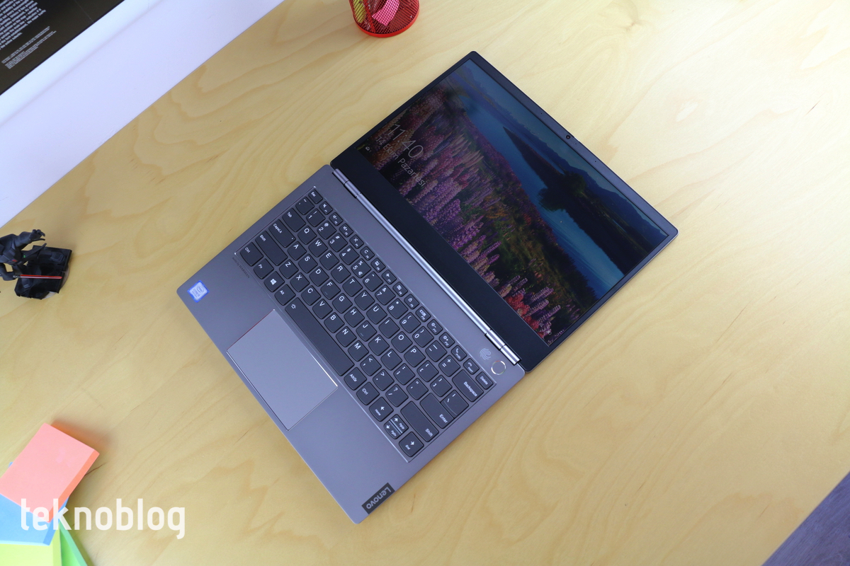 13.3 inç ekranlı bir dizüstü bilgisayara göre standart boyutlarla gelen ThinkBook 13s’in bu şekilde yazı yazarken yeteri kadar rahat bir avuç içi dayama alanı sunduğunu söyleyebiliriz. Bununla birlikte Lenovo, klavyenin üst kısmında kalan ve sadece parmak izi okuyucu gömülü güç düğmesini barındıran alanı biraz daha daraltıp, izleme dörtgenini büyütme yoluna gidebilirdi. Aslına bakarsanız, izleme dörtgeni bu hâliyle de yeterli büyüklüğe sahip ve kullanımda sorun çıkarmıyor. Ayrıca hafif sola doğru yerleştirilmesi kullanımda biraz daha rahatlık sağlıyor. Yine de, günümüzde daha büyük izleme dörtgenlerinin makbul olduğu bir ortamda, bu yönde bir tasarım kararı memnun edici olurdu.