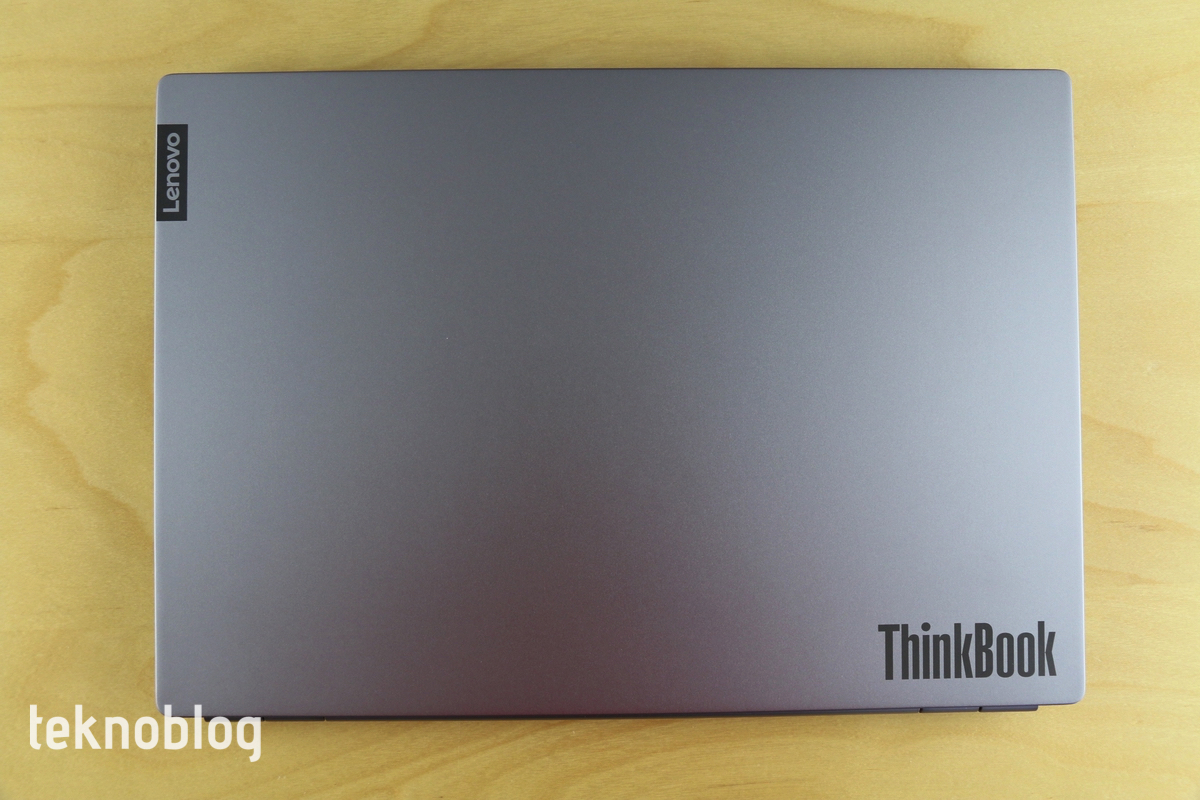 ThinkBook 13s’in ana malzemesi alüminyum. Yumuşak ve pürüzsüz yüzeyiyle gövdenin epey çekici göründüğünü söyleyebiliriz. Ekranın etrafını ise plastikten yapılmış, siyah renkli bir plaka sarıyor. Bu bölümün dizüstü bilgisayarın değerli havasına biraz gölge düşürdüğünü söylemek yanlış olmayacaktır. Öte yandan dizüstü bilgisayarın ekranının alt kısmında epey geniş bir çerçeve alanı var. Bazı üreticiler ekran çerçevesini mümkün olduğu kadar inceltmeye, yüzey alanını düşürmeye çalışıyor. Ancak Lenovo, ThinkBook 13s’te bununla pek ilgilenmiyor gibi görünüyor. Yine de, ekranın kısa kenarlarının ve üst kenarının nispeten dar çerçevelere sahip olduğunu söyleyebiliriz.