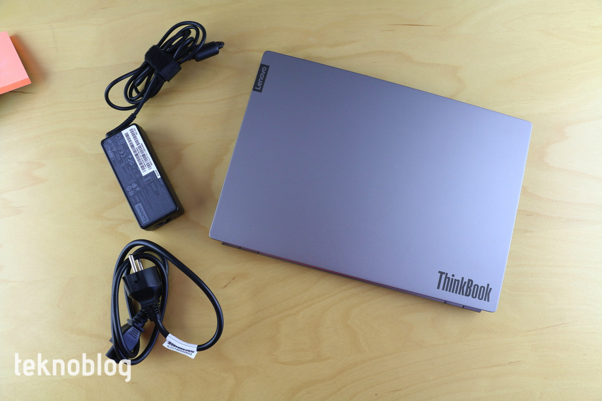 Öte yandan Lenovo, güç girişi için kendisine özel portu kullanmayı sürdürüyor. Halbuki ThinkPad serisinde özel güç girişini kullanmayı bırakıp USB-C’ye doğru geçiş yapmaya başlamıştı. Yeni ThinkBook serisinde eski sistemin kullanımını biraz masrafları düşürmeye bağlıyoruz. Öte yandan 65W şarj adaptörü de iki parçadan oluşuyor, besleme biriminin mümkün olduğu kadar küçük tutulması dikkate değer bir artı. Yine de, çantanızdaki kablo miktarının biraz daha artacağı da bir gerçek.