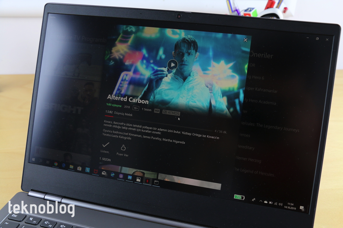 Ortalamanın üstünde parlaklığa sahip olan ekranın HDR desteğinin olduğunu belirtmiştik. Böylelikle YouTube’daki HDR videoları hakkını vererek izlemeniz mümkün. Aynı durum Netflix için de geçerli. Ekranın renk doğruluğu bir hayli yüksek ve renk aralığı da geniş görünüyor. Böylelikle ekran sadece iyi bir multimedya deneyimi yaşamak için değil, video veya fotoğraf düzenleme gibi işler için de elverişli bir ortam sunuyor.