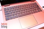 Hem 13 inç, hem de 15 inçlik Yoga 730’un ada tipi klavyeleri rahatlıkla yazmayı sağlayacak tuş aralıklarına sahip. Ancak tuşların derinliği biraz az ve sert bir zemine çarpıyormuş hissini elde ediyorsunuz. Aynı durum izleme dörtgenine yapılan tıklamalar için de geçerli. Bu arada klavye, arka aydınlatmaya da sahip.