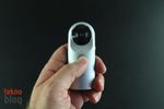 Kameranın her biri 200 derecelik görüş açısına sahip. Her bir lensin görüntüleri kamera tarafından birleştirilerek küresel görüntü oluşturuluyor. Kameranın üstünde yer alan çekim tuşuna bastığınızda 16 megapiksel çözünürlüklü (5660 x 2830 piksel) çözünürlüklü fotoğraf çekebilirsiniz. Aynı tuşa biraz daha uzun süre boyunca bastığınızda ise 2K çözünürlüklü (2560 x 1280 piksel) çözünürlükü video çekimi yapılıyor. Tabii ki, çekim yapmak için yukarıda belirttiğimiz, altta yer alan microSD kart yuvasına bir bellek kartı takmanız gerekiyor. Bu yuva 2 TB’ye kadar kapasiteye sahip kartları destekliyor.