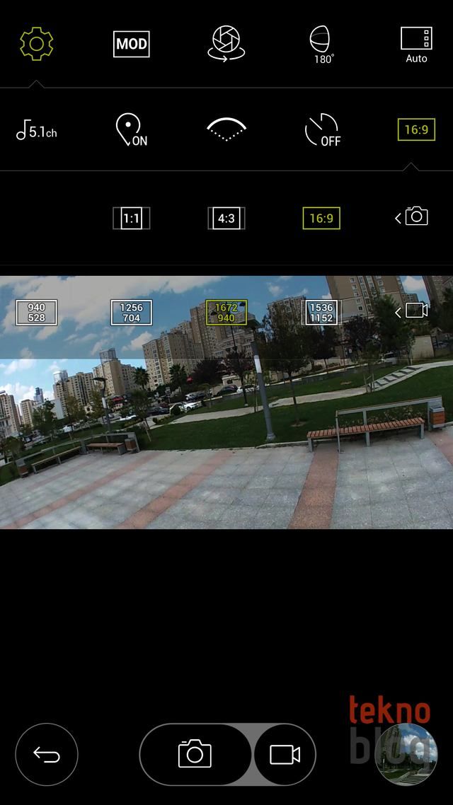 LG CAM Manager kolay arayüzü sayesinde 360 CAM ile kolay şekilde fotoğraf veya video çekmeyi sağlıyor. Otomatik mod çoğu durumda kullanım için ideal. Bununla birlikte pozlama telafisi, deklanşör hızı, beyaz dengesi, ISO hassasiyeti gibi ayarları elle yapabilirsiniz. Konum etiketlemeyi açıp kapatabilir, zamanlayıcıyı kullanarak selfie çekimlerinde kamera karşısına geçmek içi yeterli zamanı oluşturabilirsiniz. Eğer 360 derece fotoğraf veya video çekmek istemiyorsanız, görüntü modunu 360 dereceden 180 dereceye çevirmeniz de mümkün. Bu arada kenarda yer alan 360 ve 180 derece işaretli lambalar sayesinde hangi modun aktif olduğunu görmek mümkün oluyor.