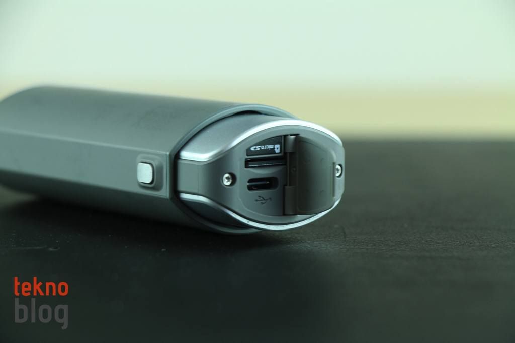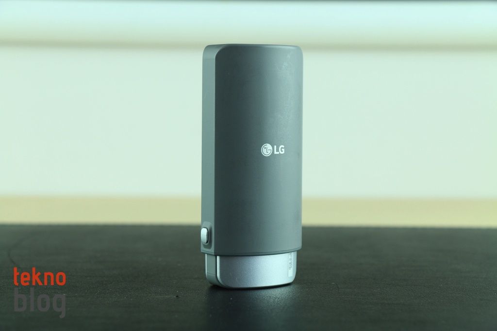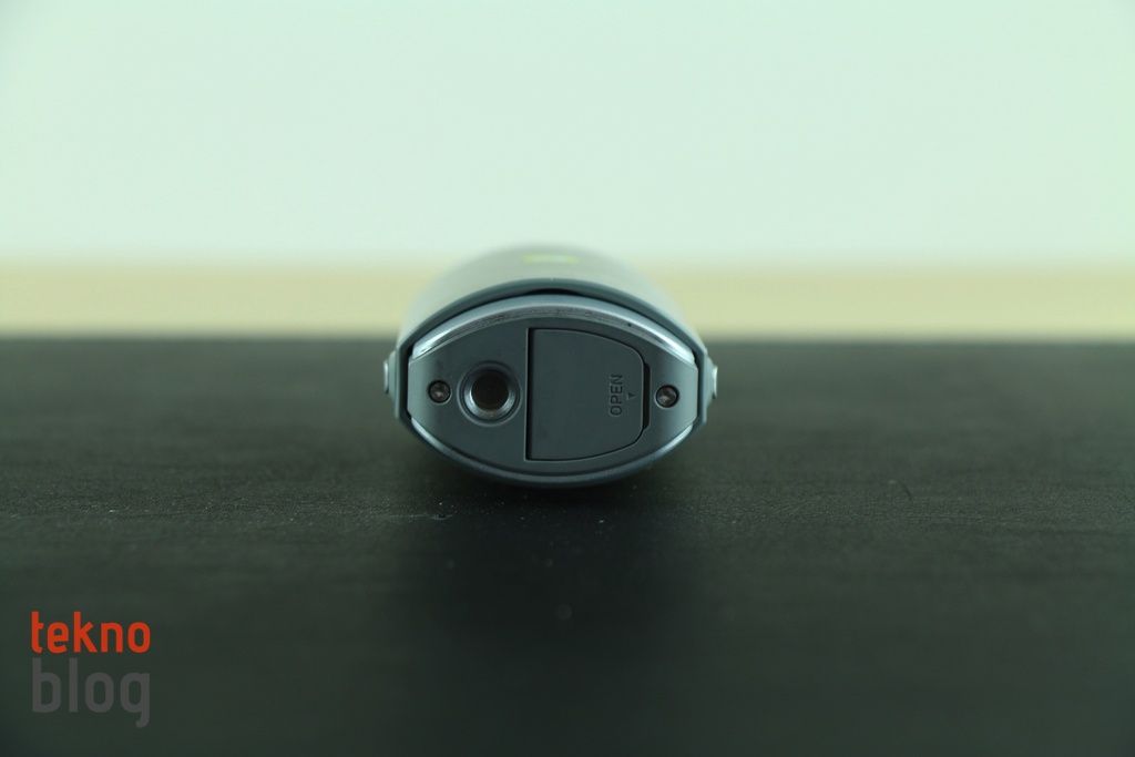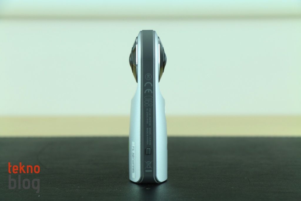 LG 360 CAM görünüş itibarıyla astım hastalarının kullandığı spreylerin kutularını andırıyor. Özellikle de kameranın koruyucu kapağı takılı olduğu durumda. Gear 360’ın küresel şeklinin aksine, LG 360 CAM biraz daha çubuk şeklinde bir tasarımla geliyor. Aslında bu tasarım sayesinde kamerayı cepte veya çantanın herhangi bir küçük gözünde bile rahatlıkla taşımak mümkün oluyor. Yukarıda da belirttiğimiz gibi, çıkarılabilir kapağı sayesinde lensler ve kameranın gövdesinin büyük çoğunluğu darbelere veya diğer dış etkenlere karşı korunuyor. Alt kısmı kapak takılı olduğunda da açık kalıyor. Bu sayede microSD kartı çıkarmak veya kamerayı, burada bulunan USB-C portu üzerinden rahatlıkla şarj etmek mümkün oluyor.