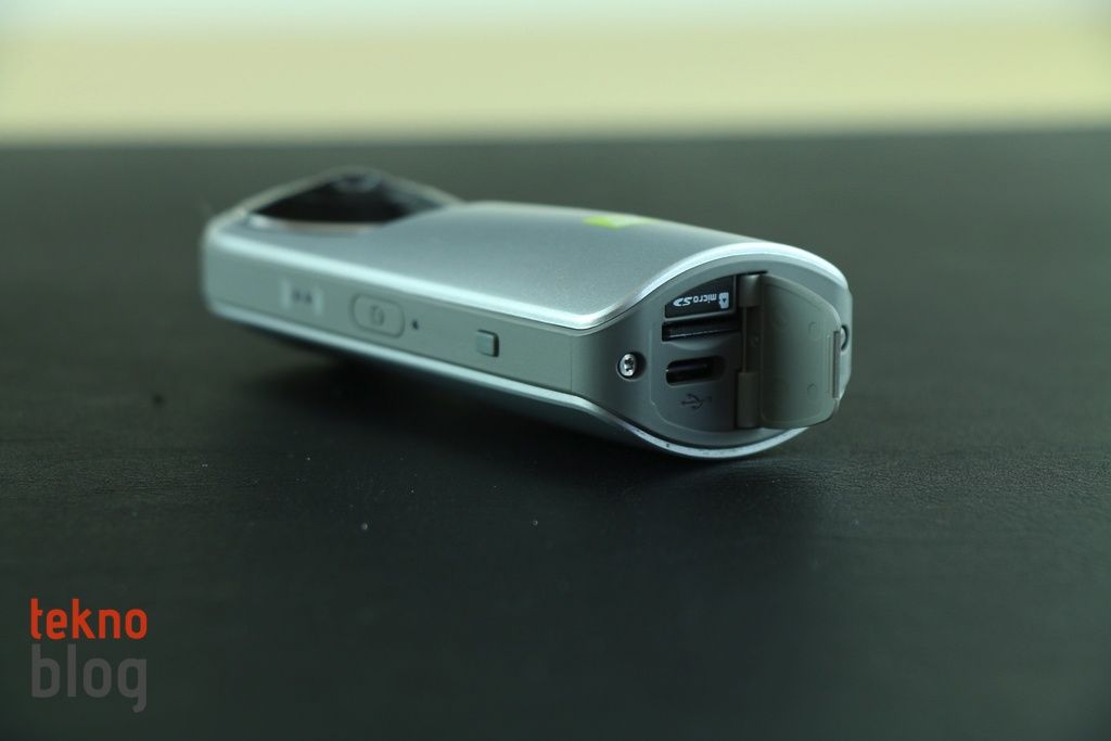 Kameranın her biri 200 derecelik görüş açısına sahip. Her bir lensin görüntüleri kamera tarafından birleştirilerek küresel görüntü oluşturuluyor. Kameranın üstünde yer alan çekim tuşuna bastığınızda 16 megapiksel çözünürlüklü (5660 x 2830 piksel) çözünürlüklü fotoğraf çekebilirsiniz. Aynı tuşa biraz daha uzun süre boyunca bastığınızda ise 2K çözünürlüklü (2560 x 1280 piksel) çözünürlükü video çekimi yapılıyor. Tabii ki, çekim yapmak için yukarıda belirttiğimiz, altta yer alan microSD kart yuvasına bir bellek kartı takmanız gerekiyor. Bu yuva 2 TB’ye kadar kapasiteye sahip kartları destekliyor.
