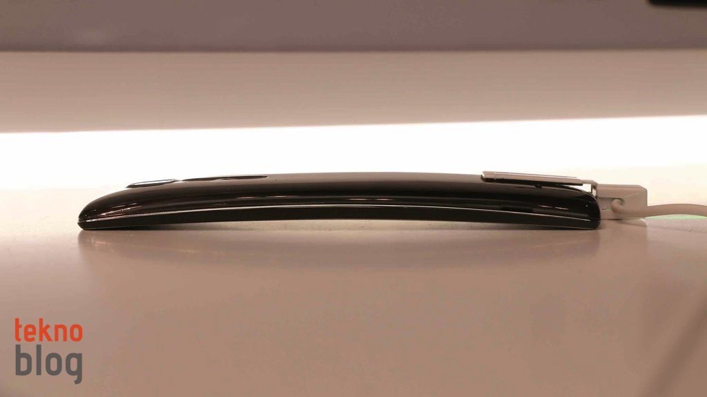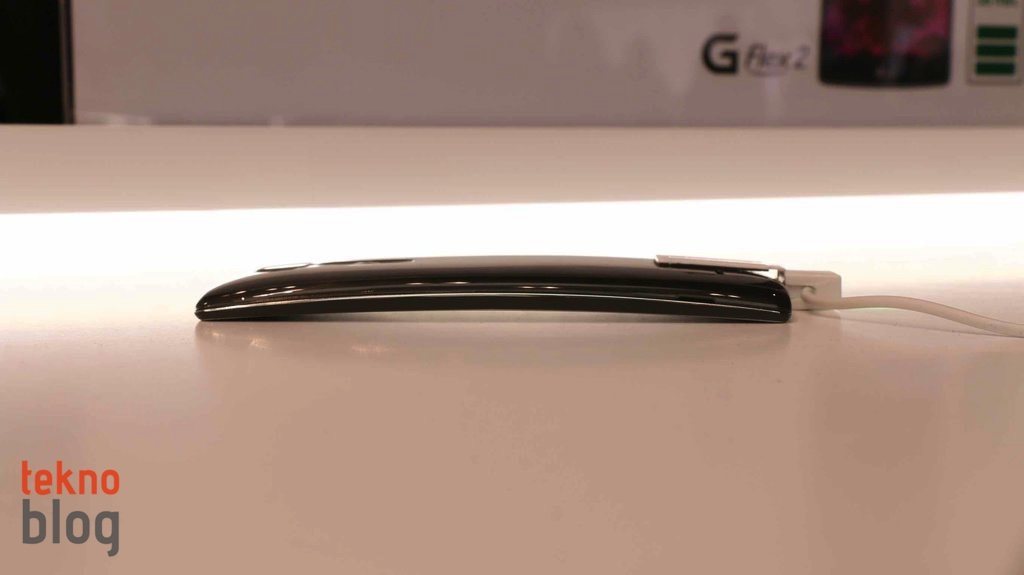 Ekranın dikey eksen üzerindeki kavisli yapısı nedeniyle telefonu elimize aldığımızda ekran üstünde ister istemez yukarıdan aşağı doğru sürükleme ihtiyacı yapmayı hissettik. Cihazın tasarımı ister istemez buna zorluyor. Kavisli yapı sayesinde LG G Flex2 yüze rahat şekilde oturuyor, telefon görüşmeleri yaparken de büyük rahatlık sunuyor. Cihazın profili konik bir yapıya sahip, en ince yerinde 7.1 mm., en kalın yerinde ise 9.4 mm.’lik kalınlık değeri ölçülüyor. Bu da cihazın rahatlıkla tutulmasını ve cebe de rahat sığmasını sağlıyor. Kavisli tasarım cepte taşırken çok fazla sorun yaratmıyor.