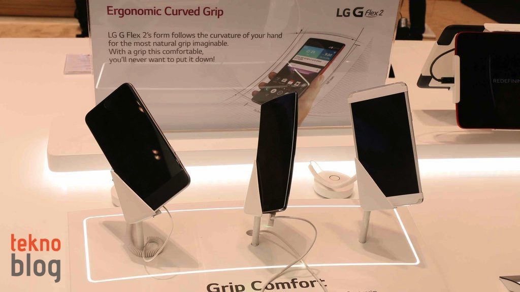 LG, bu yılın başında CES 2015’te duyurduğu kavisli tasarıma sahip akıllı telefonu G Flex2’yi Barselona’da da göze çarpacak şekilde sergiliyor. CES 2015’te bulunmadığımız için bu etkileyici akıllı telefonu gözlerimizle görme şansına henüz erişmemiştik. Barselona’da karşımıza çıkınca başında durup biraz incelemekten kendimizi alamadık.