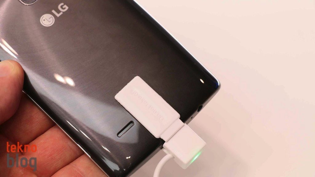 LG G Flex2’nin de arkasında Sihirli Tuşlar bulunuyor. Telefonu elimize ilk aldığımızda parmaklarımız ister istemez kenarda tuşların bulunup bulunmadığını yokladı, ancak daha sonra bunun bir LG telefonu olduğunu idrak edip işaret parmağımızı telefonun arkasına, kameranın bulunduğu bölüme götürdük. Ses ve güç butonları 13 megapiksel, lazer otomatik odak ve optik görüntü sabitleme özellikli, çift LED flaşlı kameranın etrafına yerleştirilmiş. 4K video kayıt desteğine sahip olan bu kameranın LG G3’tekine yakın bir performans sergilemesini bekliyoruz. Tabii ki, Snapdragon 810 işlemcinin varlığı Kamera uygulamasının biraz daha hızlı çalışmasını sağlayabilir. Önde de 1080p Full HD video kayıt destekli ikinci bir kamera bulunuyor.