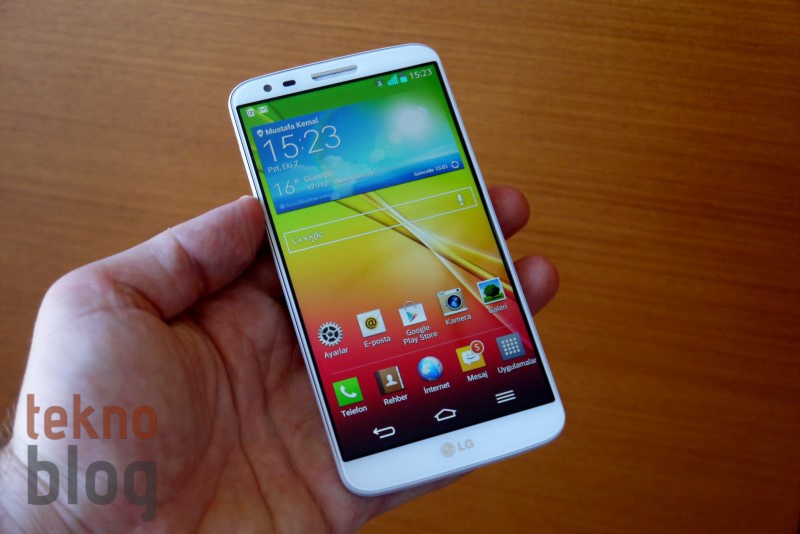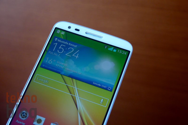 G2’yi elinize aldığınızda dar çerçeveden dolayı sanki bir ekranı elinde tutuyormuş hissine kapılabilirsiniz. Üstelik bu ekran görsel kalite bakımından da fazlasıyla etkileyici. Daha önceki LG telefonlarında gördüğümüz True HD-IPS+ LCD ekran G2’de de karşımıza çıkıyor. Bu ekran yüksek parlaklığa sahip. Karanlık bir ortamda ekranın parlaklığını en üst seviyeye çıkardığınızda gözlerinizin ışıktan rahatsız olduğunu hissedeceksiniz. Tabii ki, LG’nin G2’ye eklediği otomatik aydınlatma sistemi ortam koşullarına göre düzgün şekilde çalışıyor. IPS ekran doğal olarak yüksek görüş açılarına sahip. Parlaklık fazla olduğunda renkli yazıların veya şekillerin hafif kanadığı şeklinde bir izlenim elde ettik, ancak bu da çok fazla üstünde durulacak bir sorun değil. Sonuç olarak LG G2’nin ekranı, cihazın kullanım zevkini birkaç adım üst seviyeye çıkaracaktır.