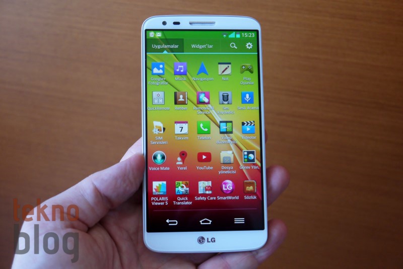 LG G2’de Polaris Viewer 5 ofis uygulaması, Quick Translator, Smart World, Görev Yöneticisi, LG Backup, Life Square gibi LG uygulamalarının yanı sıra Google’ın servislerine ait uygulamalar da yüklü geliyor. Ayrıca Google Play Store’dan binlerce ücretli veya ücretsiz Android uygulamasını yükleyebilirsiniz.