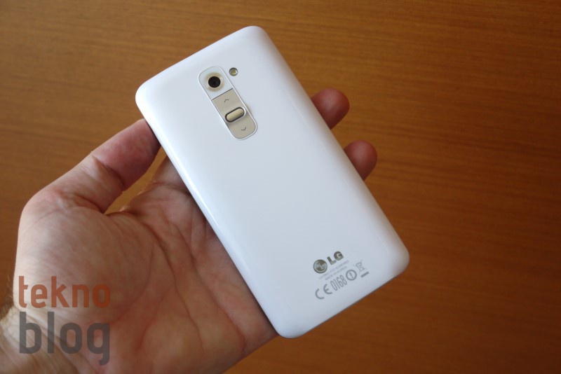 Yazının başında belirttiğimiz gibi, LG G2 yüksek boyutlu ekranına karşın yüzey alanını mümkün olduğu kadar dar tutmaya çalışan bir telefon. Bu durum telefonun tek elle kullanımını kolaylaştırıyor, ancak bazı durumlarda LG G2’yi tek elle kullanırken nedense kendimizi çok rahat hissetmedik, telefonu elimizde sürekli hareket ettirme ihtiyacını hissettik. Tabii ki, bu durum LG’nin G2’yi rahat kullanılabilir hâle getirmeye yönelik çalışmalarını fazla gölgelemiyor. Normalde bir akıllı telefonda tuşların kenarlara yerleştirilmesine alışığız. LG G2’de ise radikal bir yaklaşım sergilenmiş ve telefonun olmazsa olmazları güç ve ses tuşları arkaya, kameranın hemen altına yerleştirilmiş.