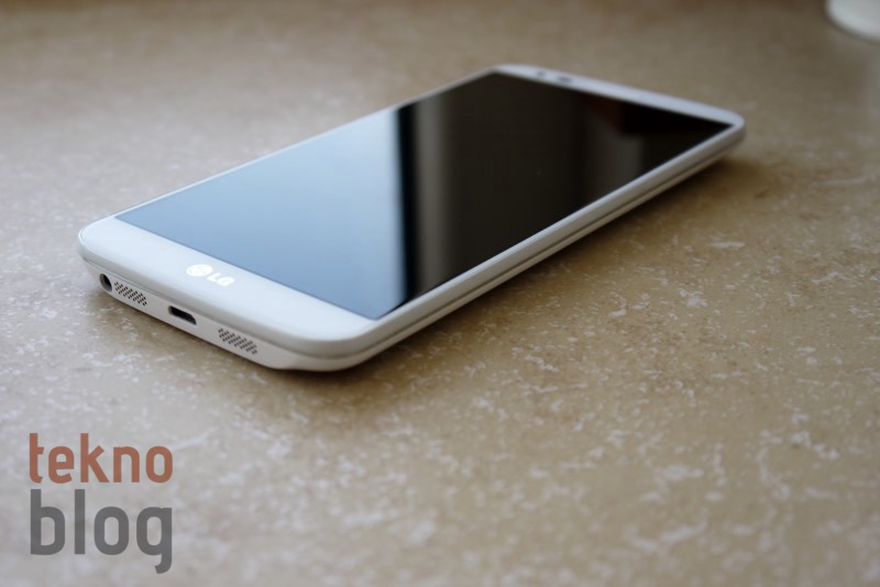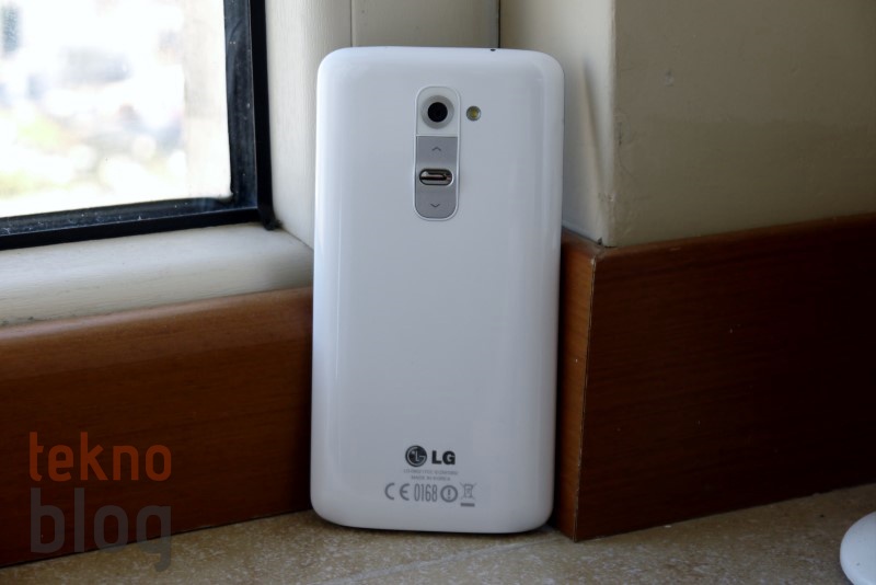 Tuşların ince profili sağlamak amacıyla arkaya alınmış olması telefonun kenarlarını tamamen boşaltmıyor. Solda microSIM kart tepsisi; altta hoparlör, 3.5 mm. kulaklık jakı, mikrofon micro USB portu yer alıyor. Üstte de kızılötesi port ve ikinci mikrofonu görüyoruz. Arka bölümde güç ve ses kademe tuşlarının dışında 13 megapiksel kamera ve LED flaşı görüyoruz. Arka kapak yerinden çıkarılmıyor, bu da telefonun bataryasının sabit olduğu anlamına geliyor. Ayrıca microSD kart yuvası da bulunmuyor. Bu da LG G2’nin dahili hafızasıyla idare etmeniz gerekeceği anlamına geliyor.
