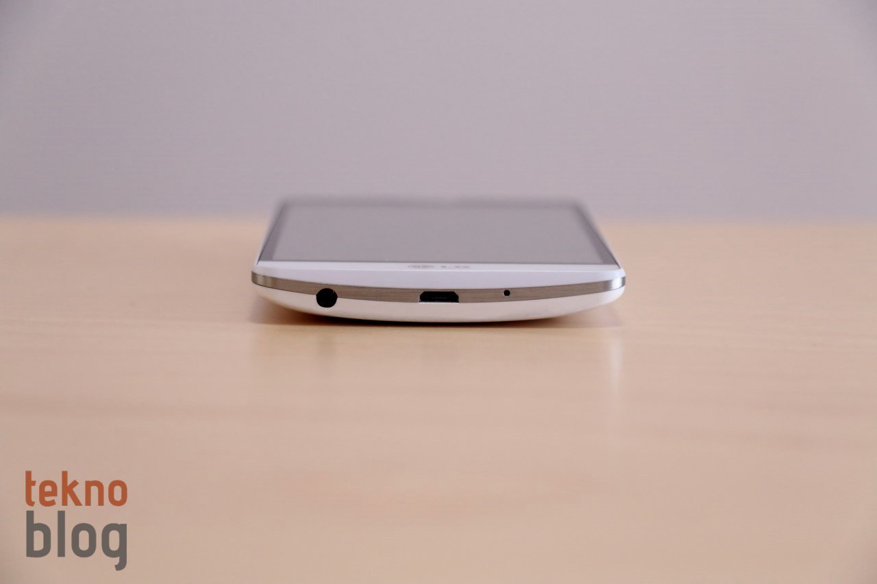 LG G3 Beat’in plastik arka kapağı sağ kenarda yer alan çentik sayesinde rahatlıkla çıkarılıyor. Metalik görünümlü bu arka kapak beyaz renkli versiyonda biraz çabuk lekelenebiliyor. Eğer alt ve üst kenarlarda aşınma benzeri bazı lekeler görürseniz endişeye kapılmayın. Hafif nemli bir bez yardımıyla bunlardan kurtulabilirsiniz. Kapağı çıkardığımızda dikkatimizi çeken ilk detay 2540 mAh kapasiteli batarya oluyor. Bu bataryanın yerinden çıkarılabilir olması esneklik sağlıyor ve ihtiyaç duyulduğunda yedek pil sayesinde telefonu şarj etmeye gerek duymadan daha fazla çalışma imkanı sunuyor. microSD ve microSIM kart yuvaları arkadan bakıldığında sağ kenarda üste doğru, üst üste gelecek şekilde konumlandırılmış. Böylelikle pille uğraşmadan, dolayısıyla telefonu kapatıp açmadan bellek kartı takmak veya SIM kart değiştirmek mümkün oluyor.