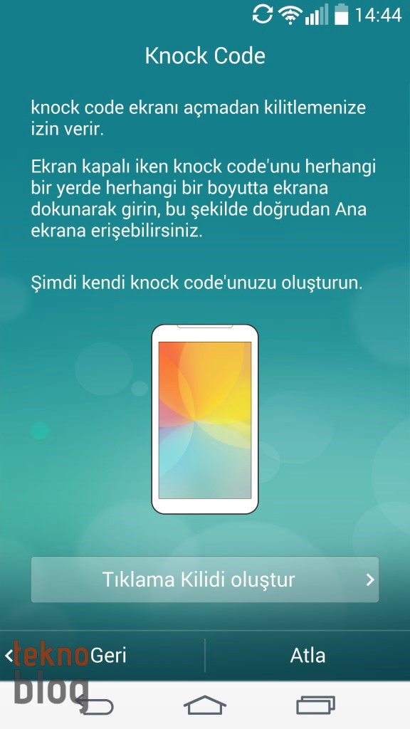 LG’nin G2 ile birlikte sunduğu KnockOn işlevi ekran kapalıyken çift tıklatmayla kilit ekranını açmaya imkan tanıyordu. KnockOn LG G3’te mevcut, ancak bunun bir adım güvenli versiyonu olan KnockCode da LG G3 kullanıcılarına sunuluyor. Geçtiğimiz şubat ayında, Mobil Dünya Kongresi’nde duyurulan ve o zaman sonrasında çıkan telefonlarda yüklü olarak geldiğini gördüğümüz bu işlev sayesinde ekran kilidini belirlediğiniz tıklatma düzeniyle aşıyorsunuz, seçenekler sınırsız… KnockOn ve KnockCode’un varlığı arkadaki sihirli tuşu kullanma ihtiyacını büyük oranda azaltıyor. Bu arada kilit ekranı açıkken ses açma tuşuna basılı tuttuğunuzda QuickMemo+ uygulaması açılıyor. Aynı ekran açıkken ses kısma tuşuna bastığınızda da Kamera uygulaması açılıyor.