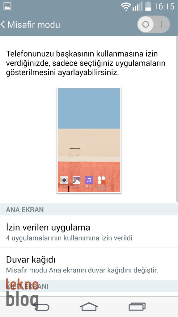 Misafir modu sayesinde kendi ayarlarınız, uygulamalarınız ve dosyalarınıza erişim mümkün olmaksızın, telefonunuzu başka ellere verebilirsiniz. Misafir modu sadece sizin izin verdiğiniz uygulamalara erişim sağlar. Ayrıca duvar kağıdı veya kilit ekranı tipini de dilediğinize uygun şekilde değiştirebilirsiniz.
