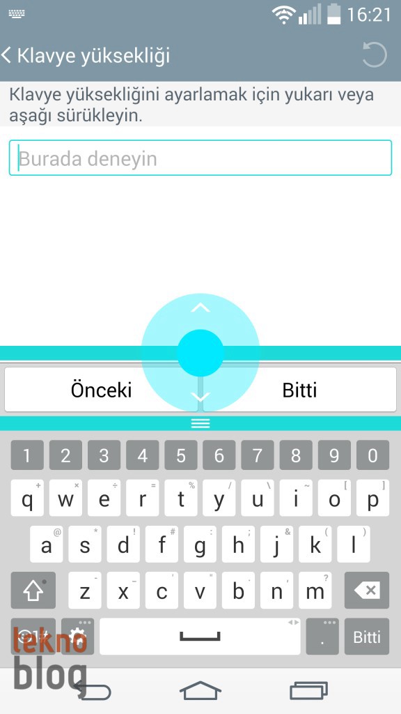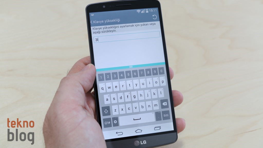 Son olarak LG G3’ün klavyesine de ayrı bir paragraf açmak gerekiyor. Ekran büyük olduğu için sanal klavye varsayılan boyutuyla bile rahat yazı yazma imkanı sunuyor. Ancak LG, klavyenin ekranda daha fazla alan kaplamasına, dolayısıyla daha büyük klavye tuşlarına izin veriyor. Klavye ayarları içinde bulunan üç farklı büyüklük ayarından birini kullanabilirsiniz. Ancak klavyeyi büyüttüğünüzde ekrandaki görünür alanın da azalacağını hatırlatmamız gerekiyor. Düzeltmeler ve kelime tavsiyeleri noktasında iyi bir performans gösteren klavye, yazı içinde elle düzeltmeleri de kolaylaştıran bir özellik içeriyor. Klavyedeki boşluk tuşuna basılı tutarak imlecin bulunduğu konumu klavyenin üstündeki düzenleme alanına getirebilir, bundan sonra da ok tuşlarıyla sağa veya sola giderek düzeltmeleri rahatlıkla yapabilirsiniz.