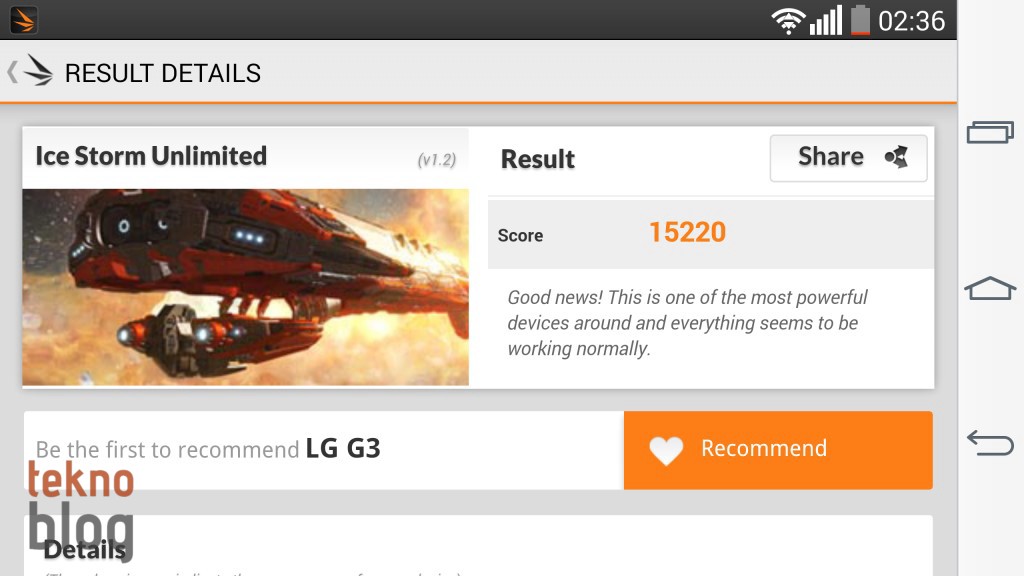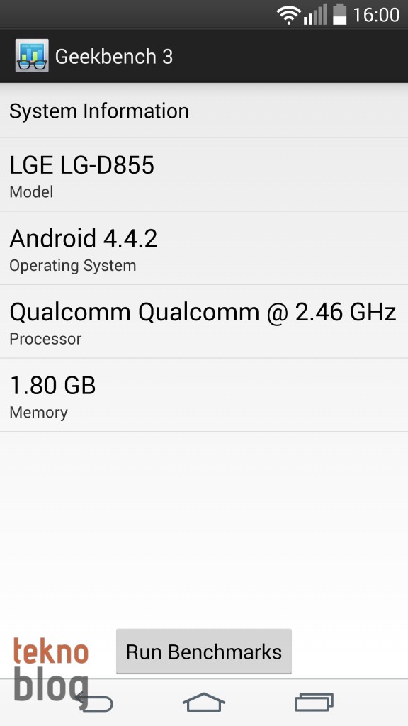 Çeşitli benchmark testleri LG G3’ün beklendiği şekilde yüksek performans gösterdiğini doğruluyor. AnTuTu Benchmark testinde elimizdeki versiyon HTC One (M8)’in biraz gerisinde kalsa da, listenin üst sıralarında yer aldığı görülüyor. Oyun performansı noktasında önemli bir referans olan 3D Mark benchmark testindeki performansıyla da LG G3 göz dolduruyor.