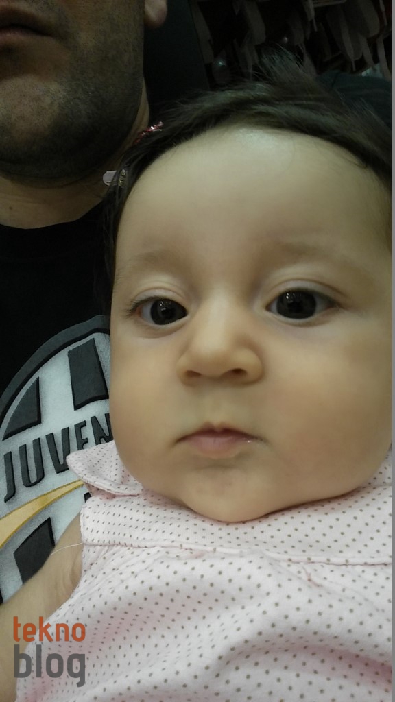 Öndeki 2.1 megapiksel kamera çözünürlük bakımından diğer bazı Android telefonlarını yakalayamıyor, yine de yeteri kadar fazla detay sunmayı başarıyor. Ön kameraya geçtiğinizde çekim tuşunun hemen yanında göreceğiniz güzellik kaydırgacı yüzünüz üzerinde hafif rötuşlar gerçekleştiriyor, pürüzsüzleştirme uygulayarak yüzünüzdeki sivilcelerin, siyah noktaların kapatılmasını sağlıyor. Çekim yapmak için ekrana dokunmak zorunda değilsiniz. Kamera yüzleri algıladığında elinizi sallayıp, daha sonra da yumruğunuzu sıkıp bıraktığınızda çekim için 3’ten geri sayım başlıyor.