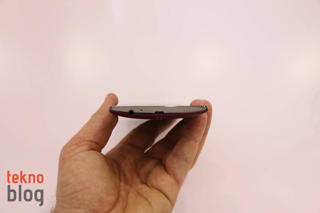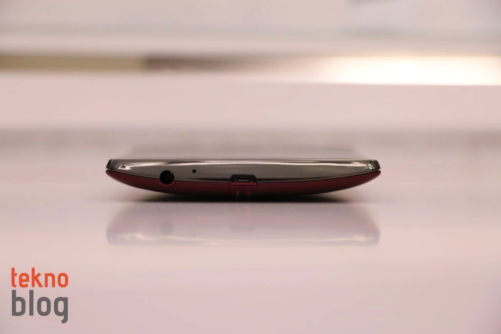 LG G4’e profilden baktığınızda hafif bir kavis fark edeceksiniz. LG G Flex serisinden ilham aldığını belli eden bu tasarım sayesinde LG G4, telefon görüşmeleri yaparken yüzünüze daha iyi şekilde oturacaktır. Sağ ve sol kenarlarda yine herhangi bir tuş veya giriş, çıkış görmüyoruz. Altta microUSB portu ve mikrofon, üstte ikinci mikrofon ve kızıl ötesi port var.