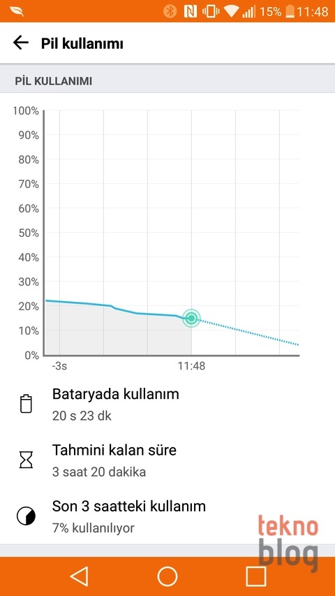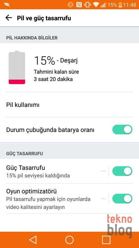 Pil tarafına baktığımızda LG G5’te 2800 mAh kapasiteli bir pilin bulunduğunu görüyoruz. Bu yıl çıkan amiral gemisi akıllı telefonların genellikle 3000 mAh ve üstü kapasitelere sahip piller barındırdığını gördüğümüz bir ortamda LG bu kapasitedeki bir pili yeterli görmüş. LG G5 ortalama yoğunlukta bir kullanımda sabahtan akşama bir günü rahatlıkla çıkarıyor. Eğer telefonu biraz daha nadir kullanır, ekran parlaklığını azaltır ve hücresel şebeke kullanımını da kapatırsanız, iki şarj arasında çalışma süresini 1,5 güne yaklaştırmanız da mümkün olabilir. Bu arada pil tasarruf modu da telefonun çalışma süresini uzatmakta size pratiklik sağlayacaktır.