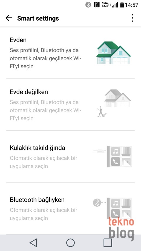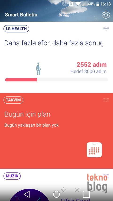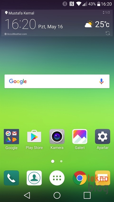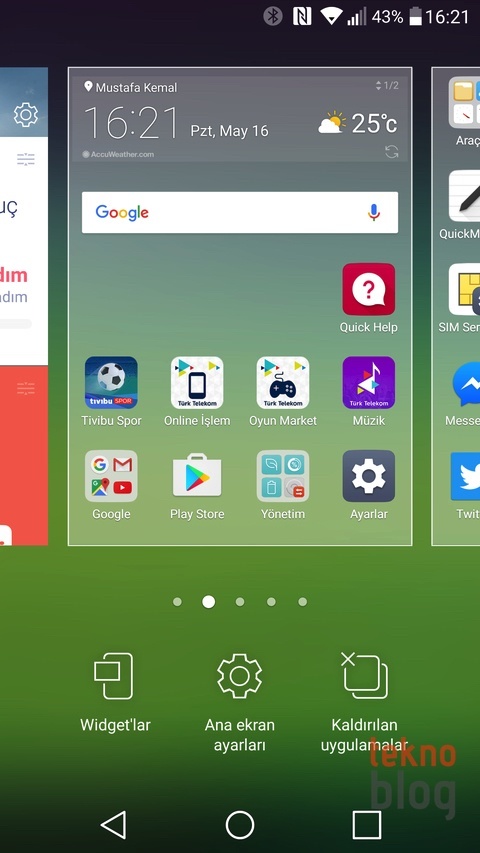 Eğer LG’nin başlangıçta sunduğu gibi kullanmaya devam ederseniz, tüm uygulama ikonları, klasörler, widget’lar ana ekranda yer alacak. Her bir paneli dilediğiniz gibi düzenleyebilir, farklı yerlerde ve zamanlarda kullanacağınız uygulamaların ve bileşenlerin bulunduğu paneller oluşturabilirsiniz. Bu arada arzu ettiğiniz takdirde Smart Bulletin adı verilen ana ekran bileşenini de en solda yer alacak şekilde açabilirsiniz. Çeşitli içerikleri bir araya getiren ve ana ekrandan hızlı erişim sağlayan bu özellik LG G5 ile birlikte arka plana atılmış, kullanımda seçim kullanıcılara bırakılmış durumda. Bununla birlikte Qslide adı verilen, sürekli ekranın üst katmanında görünen küçük uygulamalar da mevcut, ancak onlar da pek göz önünde bulunmuyor. Bu arada G4’te bulunan ikili pencere özelliği G5’te yer almıyor. Belki de LG, ekranın küçülmesi nedeniyle ikili pencere özelliğinin pek fazla işe yaramayacağını düşünmüştür.