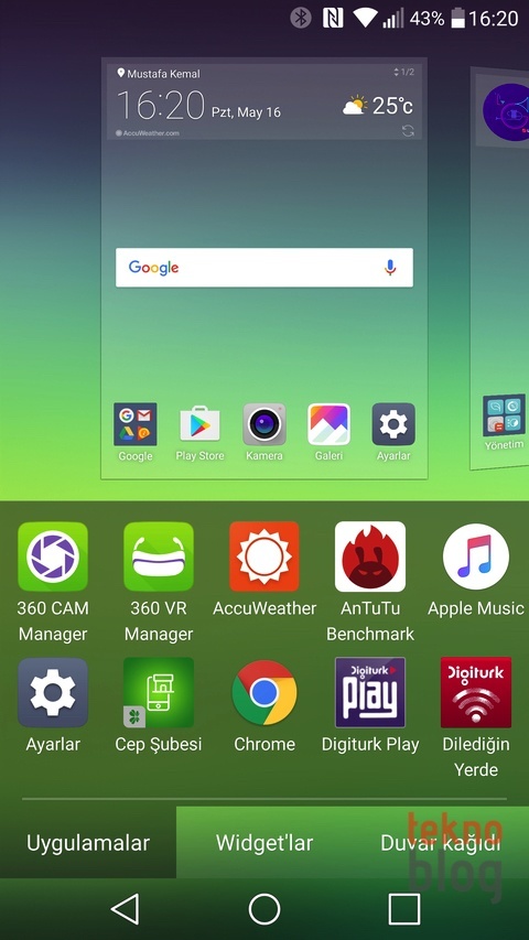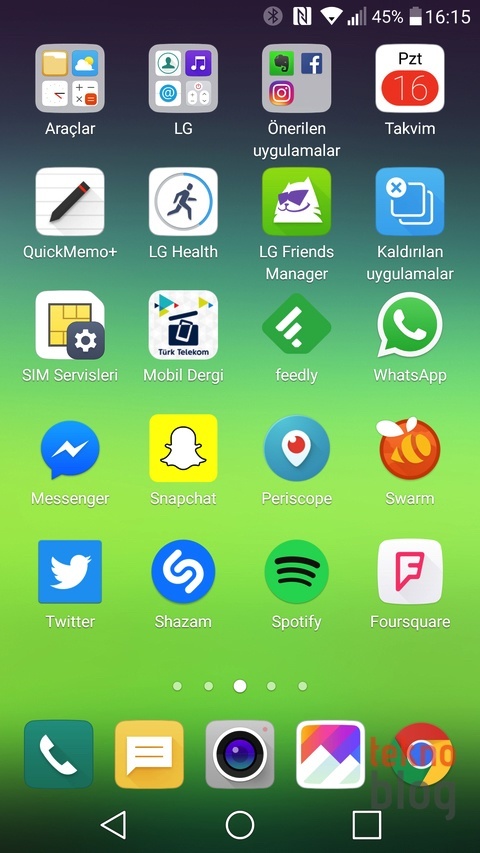 Mobil Dünya Kongresi’nin hemen öncesinde gerçekleştirilen LG G5 lansmanında bu telefonu ilk kez kurcalarken uygulama menüsünün bulunmayışını yadırgamış, bu nedenle G5’in yeni kullanıcı arayüzünü pek beğenmemiştik. Ancak G5 test için geldikten sonra bu telefonu daha uzun süre boyunca kullanmaya başladığımızda bu yeni yapının o kadar da kötü olmadığını fark ettik. Öyle ki, LG kullanıcılardan gelen şikayetleri ve talepleri göz önünde bulundurarak daha sonra sunduğu bir güncellemeyle uygulama çekmecesi ve ana ekranı bir arada bulunduran kullanıcı arayüzü seçeneğini de geri getirdi. Ancak biz LG G5’i hâlâ uygulama çekmecesi olmadan kullanmaya devam ediyoruz.