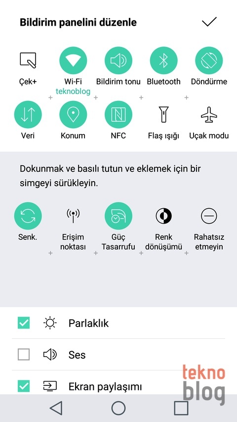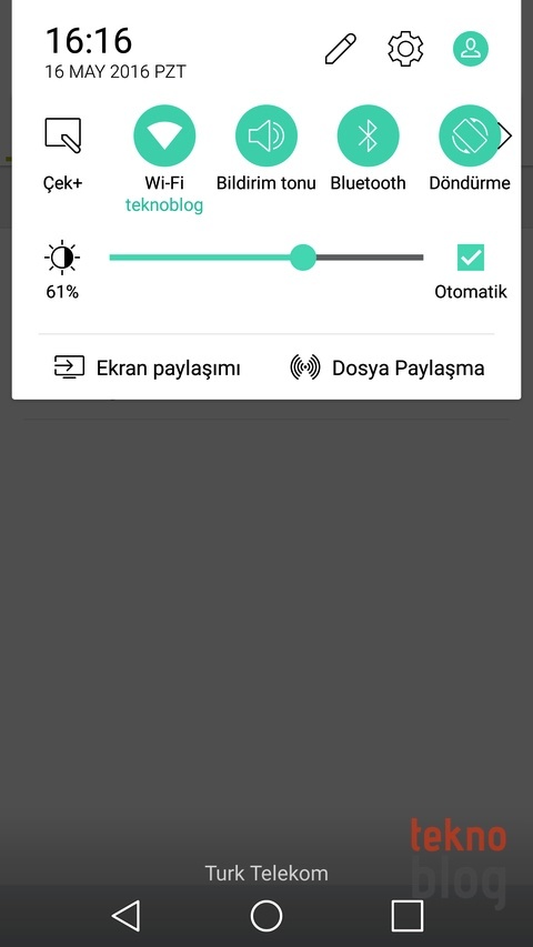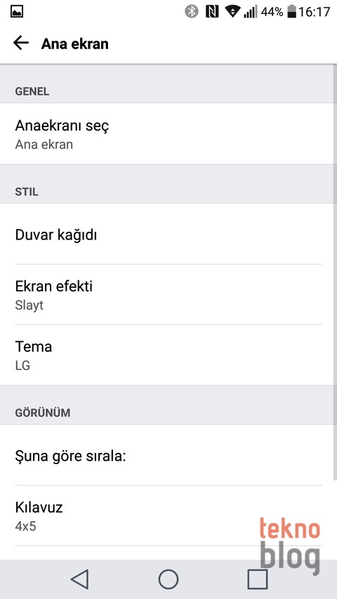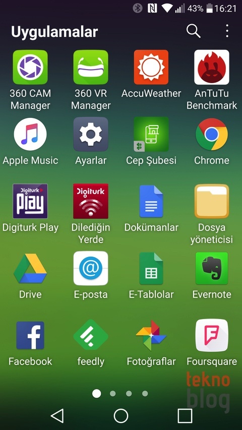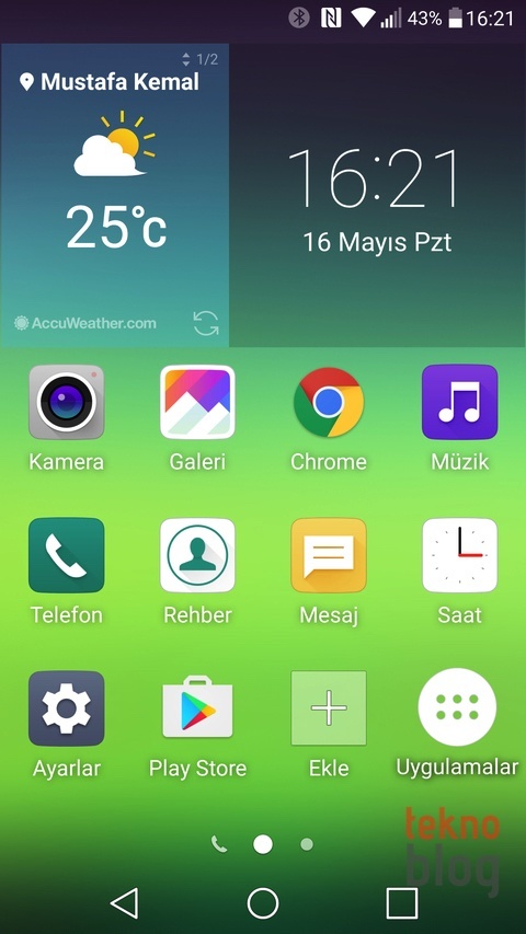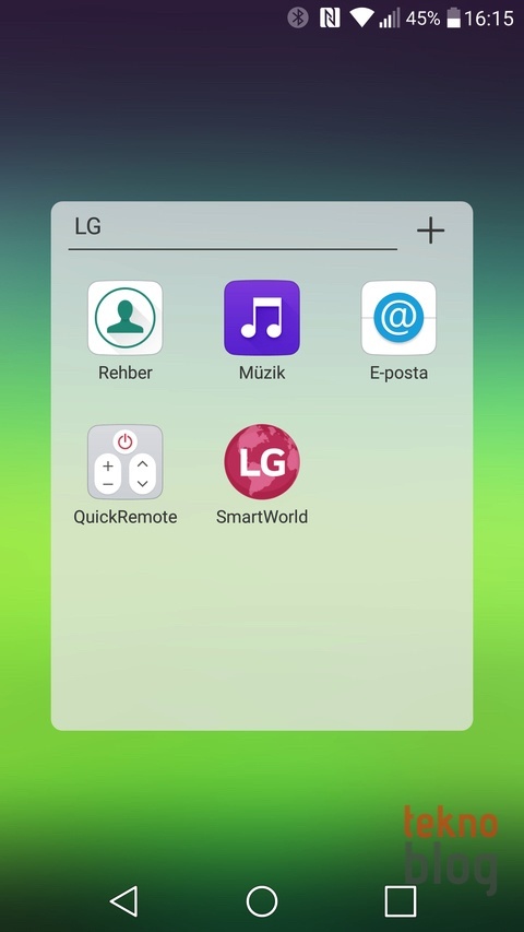 LG G5’te geçen yılın telefonlarına göre en radikal değişikliklerden birini yazılım tarafında görüyoruz. Telefon beklendiği gibi Android 6.0.1 Marshmallow ile yüklü olarak geliyor, bunun üstünde LG’nin yeni kullanıcı arayüzü çalışıyor. Kullanıcı arayüzü belki uygulama ikonları, pastel tonların hakim olduğu grafikleri, yazı tipleri ve diğer ayrıntılarıyla geçen yılın arayüzünü andırıyor. Bildirim tepsisinde sadelik ön plana çıkarılmış, yeşil renge ağırlık verilmiş. Ancak tüm bunlar bir yana yeni kullanıcı arayüzü, yapısal bakımdan önemli bir değişikliği de beraberinde getiriyor. Bizim “uygulama menüsü” olarak adlandırdığımız, LG’nin ise “uygulama çekmecesi” olarak adlandırdığı bölüm varsayılan olarak yer almıyor. Yani LG G5 kullanıcıları telefonlarını ilk kez kullanmaya başladıklarında uygulamaların bir arada gösterildiği bir menüyü görmüyorlar.