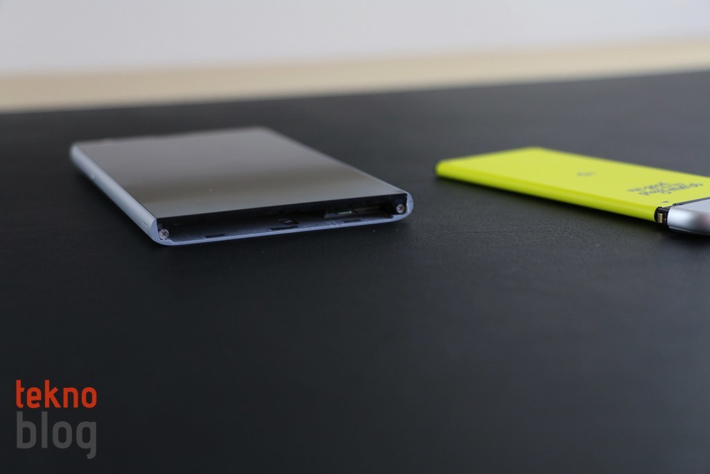 LG G5’i elimize aldığımızda bu telefonun metalden çok plastikten yapılmış bir telefon olduğu hissine kapıldık. Bunda LG’nin G5’in metal yüzeyini tıpkı otomobillerde olduğu gibi bir malzemeyle kaplamasının büyük rolü var. Söz konusu ince tabakanın neden tercih edildiğini bilmiyoruz, ancak cebinizde para veya anahtarla birlikte LG G5’i de taşırsanız, bir süre sonra bu ince kaplama üzerinde hafif çiziklerin oluşmaya başladığını, telefonun arkasını parlak ışığa tuttuğunuzda göreceksiniz. Üstelik detaylara inildikçe bazı yapısal kusurlar da dikkat çekiyor. Örneğin telefonun arka yüzünü ışığa tuttuğumuzda kamera yükseltisinin olduğu bölümün etrafındaki yüzeyin dümdüz olmadığını, hafif kabarmalar olduğunu gördük.