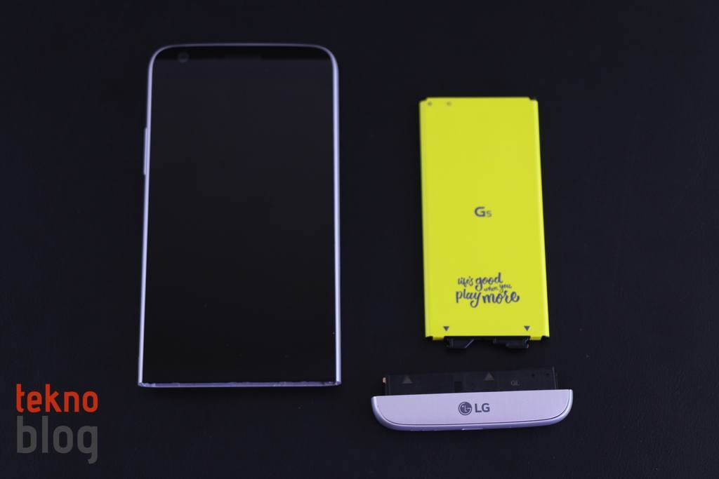 Eğer pil değiştirmekle, modüler aksesuarlarla işiniz olmayacaksa, alttaki parçayı çıkarmakla da fazla ilgilenmeyeceksiniz. Yine de, bu parçayı çıkarırken fazla nazik davranmayın, çekerken biraz güç harcayın. İlk başlarda bu parçayı çıkarmak zor ve zahmetli gelebilir, ancak zamanla pil veya aksesuar değiştirme işini kolaylıkla halledeceksiniz. Söyleyeceklerimiz pili modüler aksesuardan ayırırken de geçerli. Pili aksesuardan çıkarırken epey kuvvetli şekilde çekmenizde fayda var. Modüler yapı belirli sayıda çıkarıp takma işleminden sonra oynama yapacak gibi görünmüyor, LG bu yapının sağlam şekilde durması konusunda gerekli önlemleri almışa benziyor.
