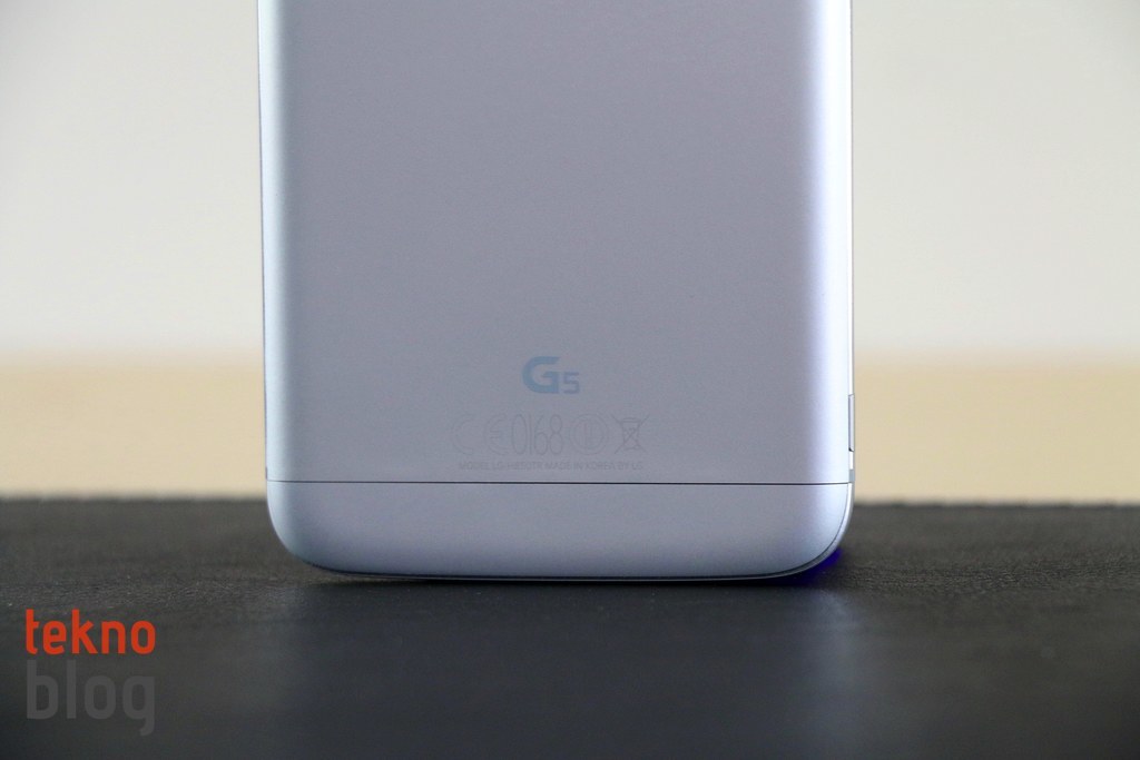 Aşağı doğru indiğimizde G5 logosunun da bulunduğunu görüyoruz. G5’in gümüş, titan, altın ve pembe gibi farklı renk seçenekleri bulunuyor. Elimizdeki gümüş renkli versiyonun epey hoş durduğunu belirtmemiz gerekiyor.