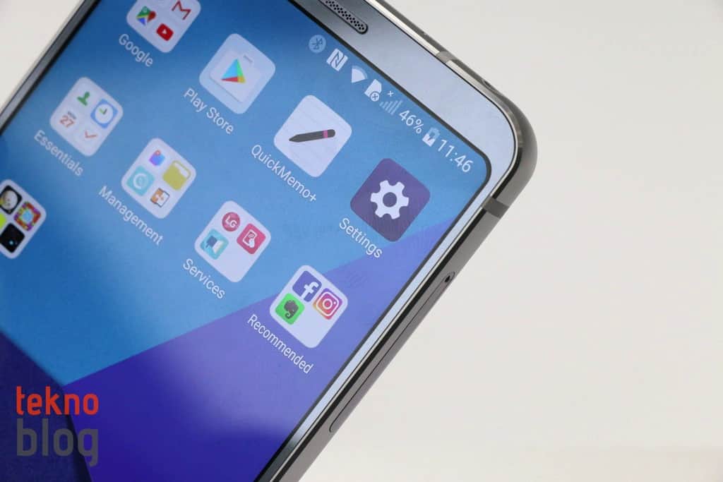 LG G6’da 5.7 inç ekran bulunuyor. Bu ekranın yuvarlatılmış köşeleri daha ilk bakışta dikkat çekiyor ve telefona farklı bir karakter kazandırıyor. Üstelik LG, kullanıcı arayüzünü de bu kavisli köşelere uygun şekilde düzenleyerek cihazın daha estetik ve havalı durmasını sağlamış. Ekranın etrafını gayet ince bir çerçeve sarıyor. Bu çerçevenin inceliği sayesinde LG G6 kompakt bir telefonmuş hissini yaşatıyor. Aslında LG G5 gibi, 5.3 inç ekrana sahip bir cihazla aynı yüzey alanına sahip bir telefon, ince ekran çerçevesi sayesinde mümkün hâle geliyor. Ayrıca telefonun ince ve uzun yapıdaki ekranı da, telefonun ince hissedilmesini ve tek elle rahatlıkla kullanılmasını sağlıyor.