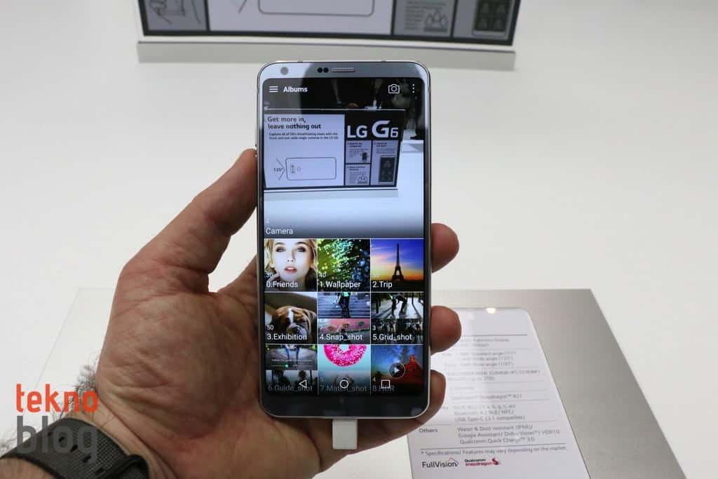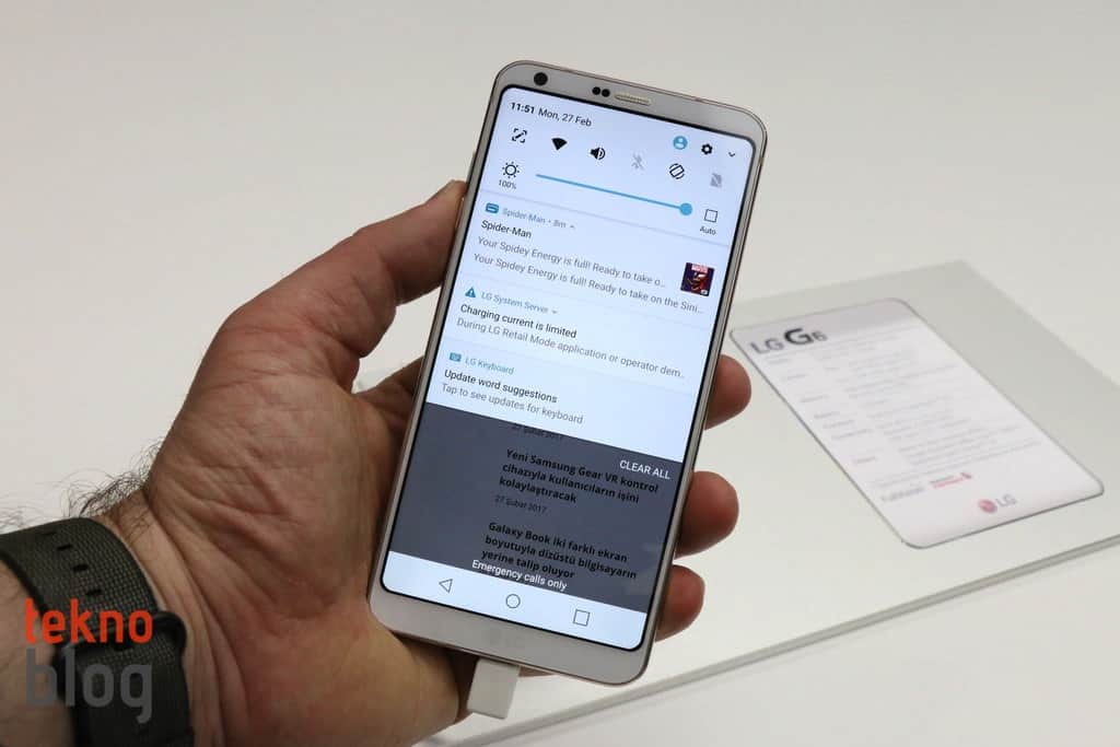 LG G6’nın ekranı 18:9 gibi sıra dışı bir görüntü oranına sahip. Diğer bir deyişle 2:1 oranındaki bu ekran, iki tane kare birimi yan yana ekrana sığdırmayı sağlıyor. Kare kamera arayüzü, Galeri uygulaması gibi noktalarda bu avantajın kullanıldığını görüyoruz. Öte yandan LG, ekranın boyunun uzamasının getirdiği avantajla daha fazla piksel sığdırıyor, 2880 x 1440 gibi bir piksel oranına ulaşıyor. IPS LCD ekran gayet canlı, parlaklığı yüksek, görsel deneyimi artırıyor. LG G6’da film izlemek ve oyun oynamak gerçekten zevkli görünüyor. Snapdragon 835 yerine 821 işlemciyi tercih eden LG’nin bu seçimi, kullanıcıları fazla mutsuz edeceğe benzemiyor. Telefon gayet akıcı görünüyor, ancak performans hakkında daha detaylı yorum yapmak için incelemeyi beklemek gerekiyor.